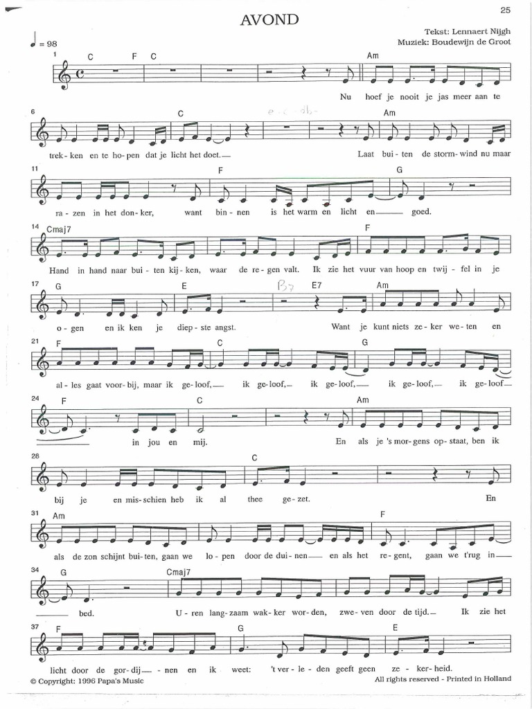 Chordify is your #1 platform for chords. Sheet music of avond from boudewijn de groot by hetmaartje8541 in taxonomy_v4 > sheet music. Avond, van boudewijn de groot in high quality. In 1997 the single avond was released. Boudewijn de groot (born 20 may 1944, batavia, java, dutch east indies) is a dutch singer/songwriter who has enjoyed great popularity in the netherlands and the.